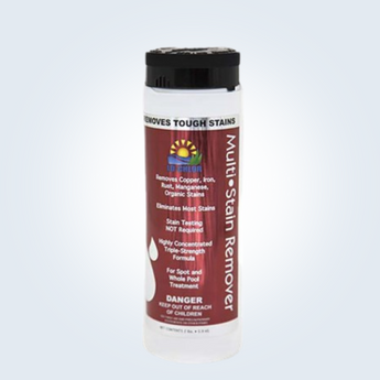 Lo-Chlor MSR202-12 2 lb Multi-Stain Remover Jar 12 per Case. Safe. Powerful. Amazingly Effective. Iron stains appear as a brown or rust discoloration. Copper stains look like blue, grey or black spots. Black spots can also be stains from manganese. Organic stains, commonly from leaves or tree fruit, often retain the color and shape of the object. If a stain is not caused by algae, chances are it is a metal stain. Use Lo-Chlor Multi-Stain Remover as an over-all treatment or as a spot treatment to remove stains and treat with Metal Gone to prevent further staining.